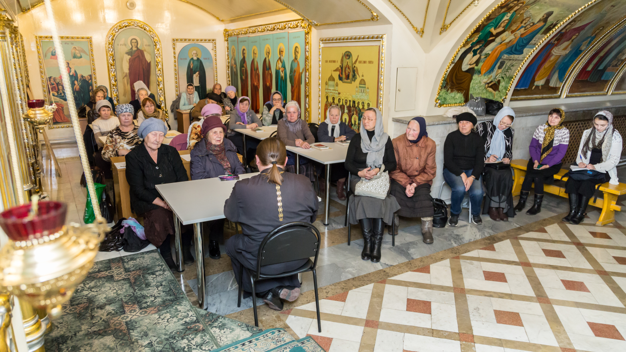 Другая наша задача – создание походной церкви. Её сейчас нет, и мы ищем средства, чтобы купить палатку, приобрести всё необходимое для совершения богослужения. Эта литургия будет называться миссионерской экспедицией, в которой должны быть священник, его помощники и люди, которые поют, хотя бы 2-3 человека, чтец, уставщик. Учитывая, что эта задача мною уже поставлена перед епархией, поэтому мы и создали миссионерский кружок. Потенциал этого кружка –молодые неравнодушные люди из храмов Удмуртии, которые хотели бы участвовать в миссионерских экспедициях. Сейчас они получают азы богословия, учатся читать и петь на церковно-славянском языке. Мы планируем с ними начать попробовать в нижнем храме Александро-Невского Собора чтение акафистов, куда будем привлекать регентов, чтобы они научали нашу молодежь.